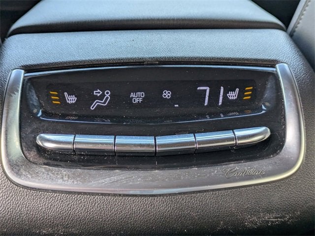 - Opens or closes when the system senses the key fob and the driver extends their foot under the left-hand side of the rear bumper over an image of the Cadillac Crest projected under the vehicle