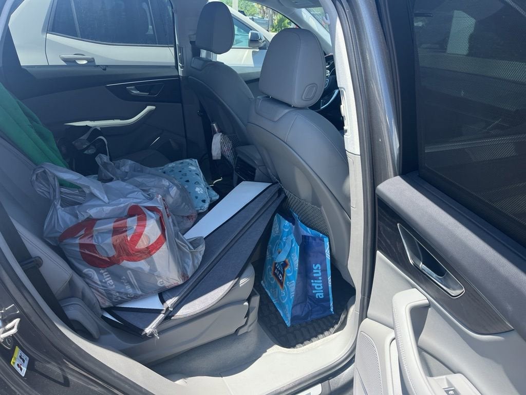 10 Speakers, 4-Wheel Disc Brakes, ABS brakes, AM/FM radio: SiriusXM w/ 360L, Automatic temperature control, Delay-off headlights, Four wheel independent suspension, Front Bucket Seats, Front dual zone A/C, Front fog lights, Garage door transmitter: HomeLink, Low tire pressure warning, Memory seat, Navigation system: Audi MMI Navigation plus with Touch Response, Panic alarm, Power Liftgate, Power moonroof: Panoramic, Power windows, Radio data system, Remote keyless entry, Telescoping steering wheel, Traction control, Turn signal indicator mirrors, 3.204 Axle Ratio, 3rd row seats: bench, Air Conditioning, Alloy wheels, Auto High-beam Headlights, Auto-dimming door mirrors, Auto-dimming Rear-View mirror, Brake assist, Bumpers: body-color, Compass, Driver door bin, Driver vanity mirror, Dual front impact airbags, Dual front side impact airbags, Electronic Stability Control, Emergency communication system: Audi connect CARE, Exterior Parking Camera Rear, Front anti-roll bar, Front Center Armrest, Front reading lights, Fully automatic headlights, Genuine wood door panel insert, Heated door mirrors, Heated Front Bucket Seats, Heated front seats, Illuminated entry, Leather Seating Surfaces, Leather Shift Knob, Leather steering wheel, Occupant sensing airbag, Outside temperature display, Overhead airbag, Overhead console, Passenger door bin, Passenger vanity mirror, Power door mirrors, Power driver seat, Power passenger seat, Power steering, Radio: Audi Sound System, Rain sensing wipers, Rear air conditioning, Rear anti-roll bar, Rear fog lights, Rear reading lights, Rear seat center armrest, Rear side impact airbag, Rear window defroster, Rear window wiper, Reclining 3rd row seat, Roof rack: rails only, Security system, Speed control, Speed-sensing steering, Split folding rear seat, Spoiler, Steering wheel memory, Steering wheel mounted audio controls, Tachometer, Tilt steering wheel, Trip computer, Variably intermittent wipers, and Wheels: 19 5-Arm-Star DesigN.